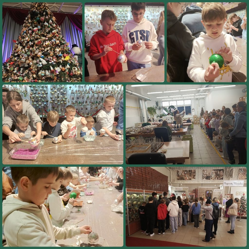 To niezwykłe miejsce już od progu wprowadziło wszystkich w świąteczny nastrój. Na początku uczniowie poznali historię bombek choinkowych oraz dowiedzieli się, jak wygląda ich produkcja – od wydmuchiwania szklanych form, przez posrebrzanie, aż po precyzyjne, ręczne malowanie.