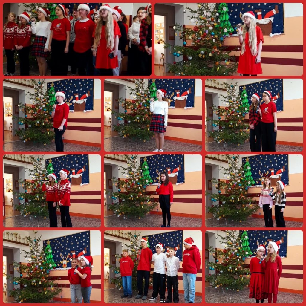 Dziś w naszej szkole było trochę inaczej niż zwykle, ale równie pięknie i świątecznie ✨ Zamiast tradycyjnych jasełek odbył się Przegląd Świątecznej Piosenki Angielskiej, który wprowadził nas w wyjątkowy, bożonarodzeniowy nastrój.